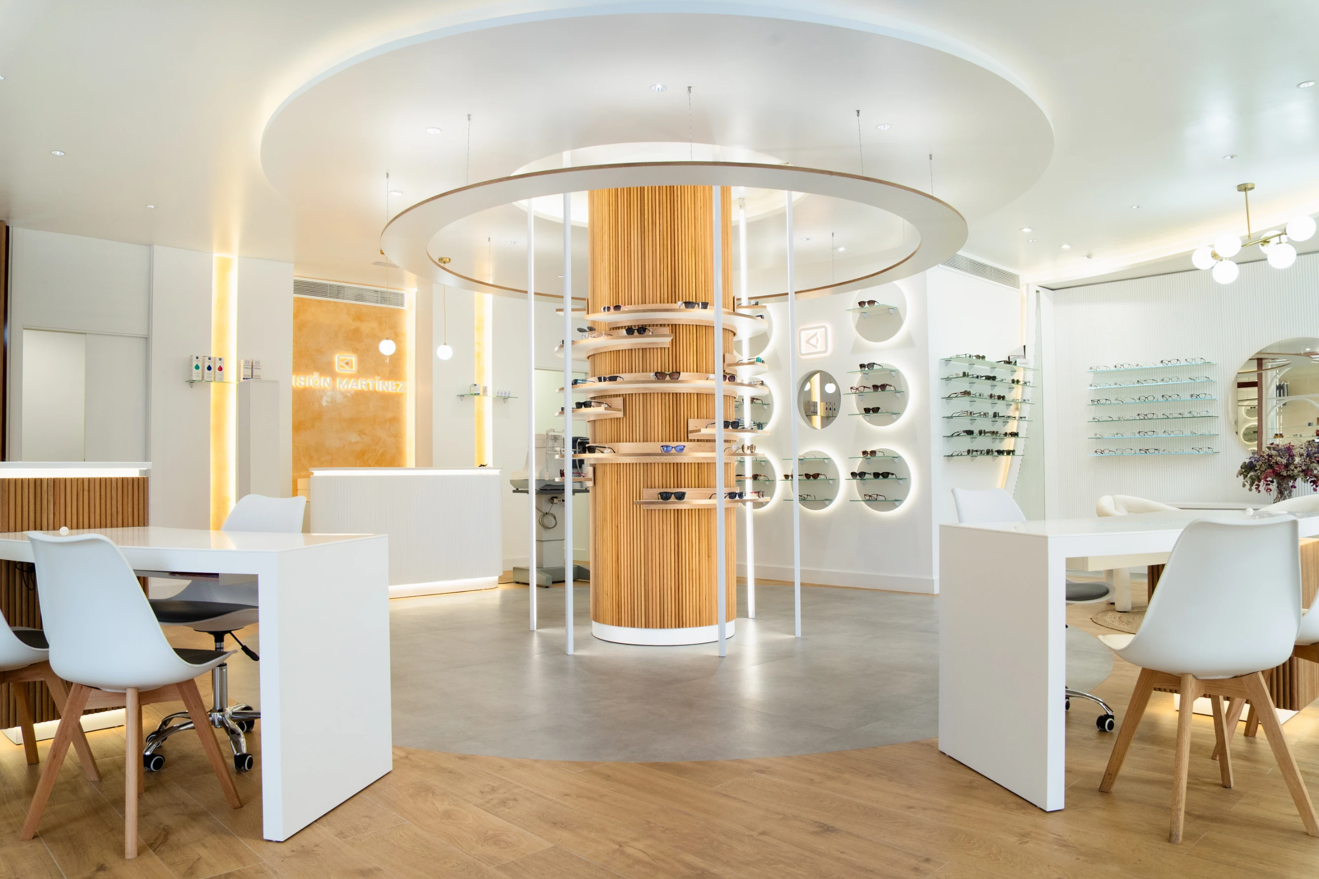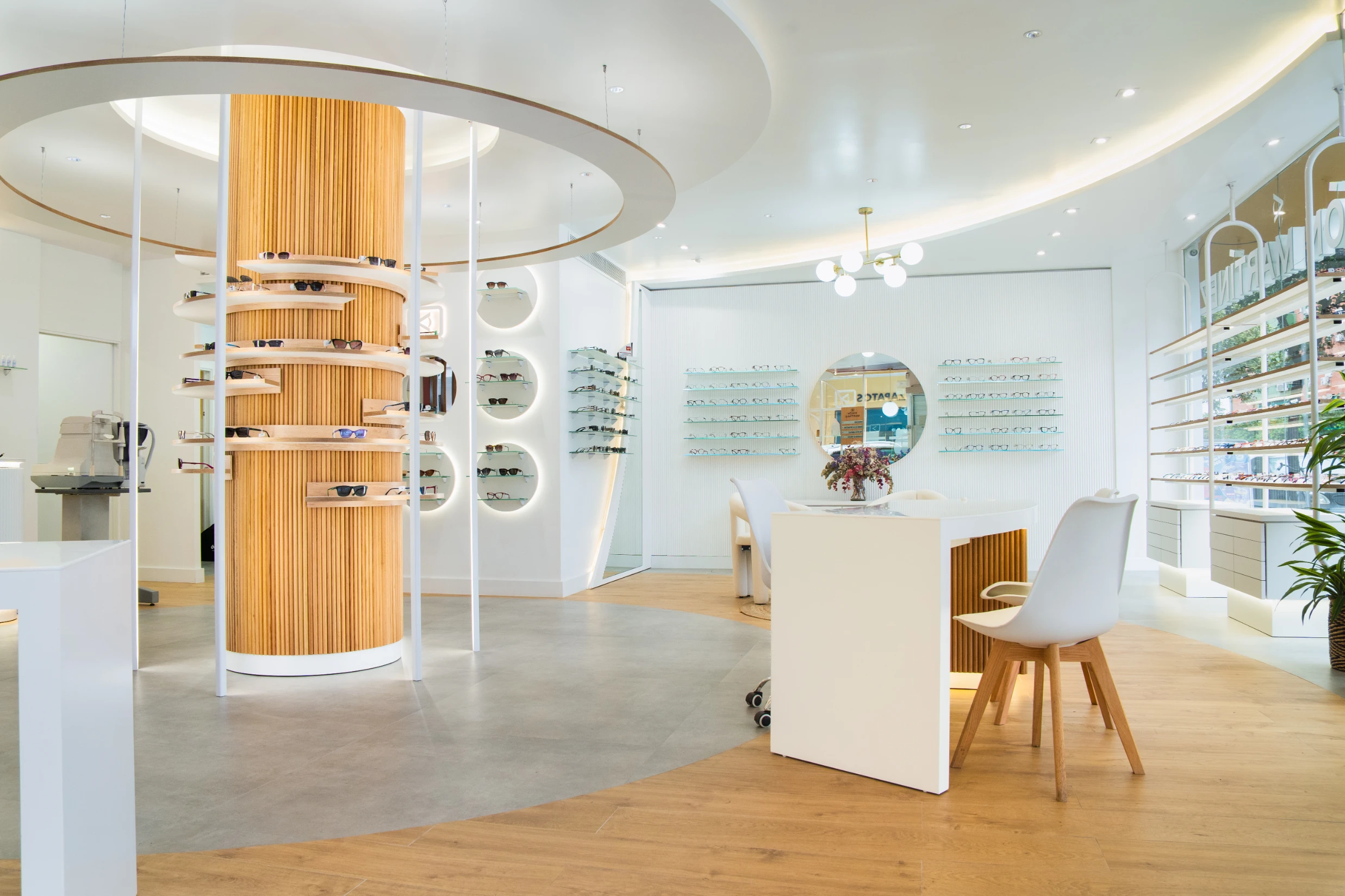 La reforma de Óptica Visión Martínez ha dado vida a un espacio moderno, sofisticado y estratégicamente diseñado para mejorar la experiencia del cliente. Con un pilar central protagonista, iluminación envolvente y una distribución inteligente, el proyecto combina funcionalidad y estética, elevando la identidad de la óptica y optimizando la exposición del producto.
